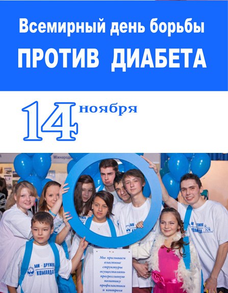 Всемирный день борьбы с диабетом (World Diabetes Day), отмечаемый ежегодно 14 ноября, был введен в 1991 году Международной диабетической федерацией (International Diabetes Federation, IDF) и Всемирной организацией здравоохранения (World Health Organization) в ответ на угрозу возрастания заболевания диабетом во всем мире. С 2007 года Всемирный день борьбы с диабетом проводится под эгидой ООН. Сегодня это крупнейшая в мире кампания по информированию о данном заболевании, охватывающая более 1 миллиарда человек в более чем 160 странах мира. А 14 ноября было выбрано в связи с тем, чтобы увековечить заслуги канадского врача и физиолога Фредерика Бантинга, родившегося в этот день в 1891 году, который вместе с врачом Чарльзом Бестом сыграл решающую роль в открытии в 1922 году инсулина — лекарства, спасающего жизнь людям, больным диабетом. Диабет — это хроническая болезнь, которая возникает в тех случаях, когда поджелудочная железа не вырабатывает достаточно инсулина или когда организм не может эффективно использовать вырабатываемый им инсулин. Это приводит к повышенному уровню содержания глюкозы в крови (гипергликемии). В январе 1922 года молодой канадский ученый Фредерик Бантинг (Frederick Banting) впервые в истории спас жизнь, сделав инъекцию инсулина 14-летнему мальчику, страдавшему тяжелой ювенильной формой сахарного диабета. Вместо того, чтобы получить патент на инсулин и впоследствии сказочно разбогатеть, Бантинг передает все права Торонтскому университету. В дальнейшем права на производство инсулина перешли к Канадскому совету по медицинским исследованиям, и в конце 1922 года новый препарат появился на рынке лекарств. Открытие Фредерика Бантинга и его коллеги Чарльза Беста (Charles Best) спасло жизнь миллионам людей. В 1923 году, признавая первое великое достижение 20 века в области биохимии и медицины, Бантингу и Маклеоду (Macleod) была присуждена Нобелевская премия. Заслуги Беста были проигнорированы, что чрезвычайно задело Бантинга, и он добровольно вручил половину своей Нобелевской премии Бесту. «Объединимся в борьбе с диабетом» - синий круг стал символом Дня Долгие века люди не знали средства для борьбы с этой болезнью, и диагноз «сахарный диабет» не оставлял пациенту никакой надежды не только на выздоровление, но и на жизнь: без инсулина — этого гормона, обеспечивающего усвоение тканями глюкозы, больной организм существовать не может и обречен на медленное угасание. И хотя сахарный диабет и по сей день неизлечим, благодаря инсулину люди научились держать эту болезнь под контролем. А успехи ученых в области диабетологии последних лет позволяют оптимистически смотреть на решение проблем, вызываемых диабетом. Ведь сегодня сахарный диабет, также как атеросклероз и рак, входит в тройку заболеваний, наиболее часто приводящих к инвалидности и смерти людей. Он характеризуется устойчивым повышением уровня глюкозы в крови, может возникнуть в любом возрасте и продолжается всю жизнь. Различают сахарный диабет I типа (инсулинозависимый) и сахарный диабет II типа (инсулиннезависимый). По данным ВОЗ, сахарный диабет увеличивает смертность населения в 2-3 раза и сокращает продолжительность жизни. К тому же, актуальность проблемы обусловлена еще и масштабностью распространения данной болезни. По оценкам, в 2014 году диабетом страдали 422 миллиона взрослых во всем мире по сравнению с 108 миллионами в 1980